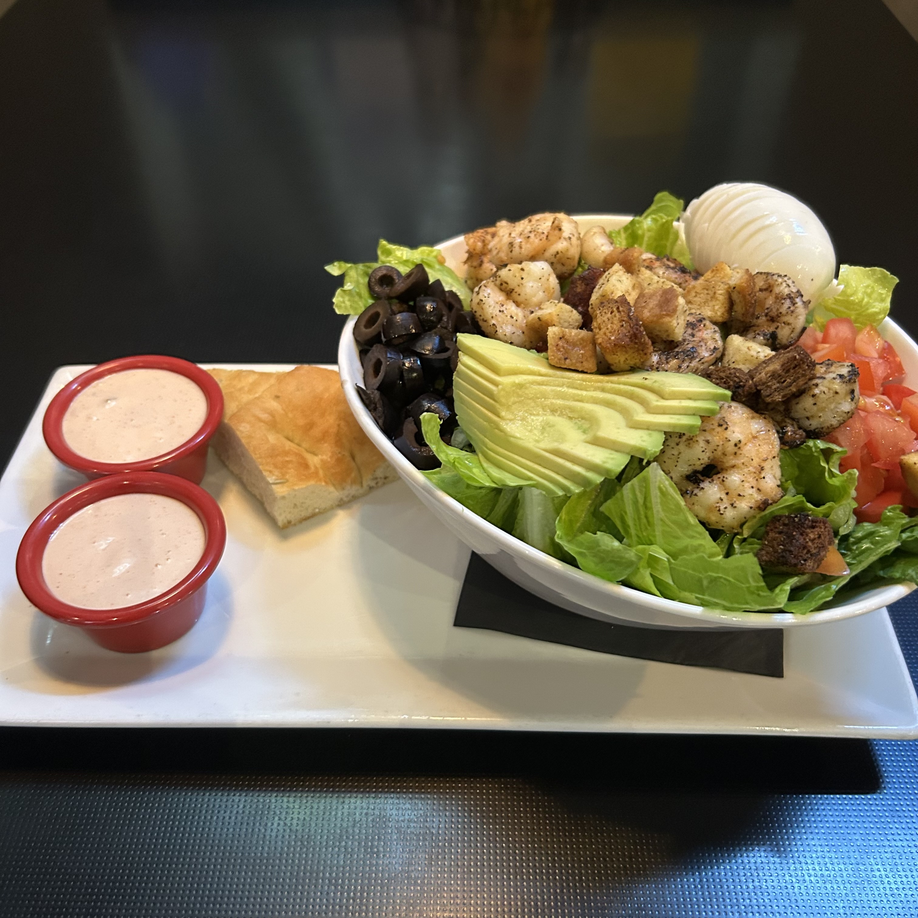 $17.5 Full / $12.5 HalfShrimp, crisp romaine, diced tomatoes, hard boiled egg, avocado, black olives, croutons and 1000 island dressing.